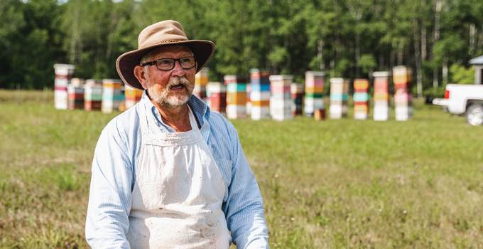 Art Bergmann, beekeeper and long-time Clearview Co-op member, is one of many Bee Maid honey producers that contribute to Farmery’s sweetened drinks.