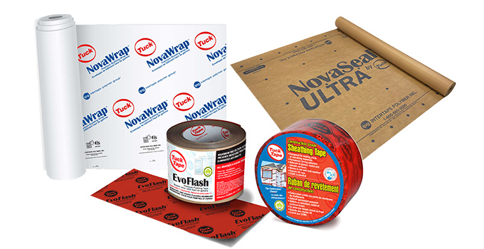 Together, the products listed comprise Tuck's Total Moisture Control System, engineered to work together to play an integral role within the building envelope by helping reduce energy costs and contribute to moisture control and a healthier building environment, while ensuring superior contractor and owner satisfaction.