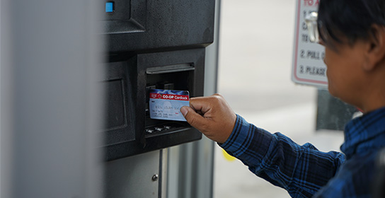 Co-op Cardlock Cards can only be used to purchase fuel at Co-op Cardlock locations and require a personal identification number (PIN) to begin fuelling. If the PIN is keyed incorrectly multiple times, your account may be frozen. In the case of theft or loss, Co-op Cardlock Cards can be cancelled immediately.